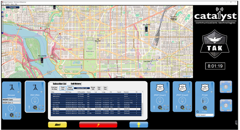InterLoc™ from Catalyst Communications Technologies obtains location and other meta data from standards based LMR and broadband mission critical push-to-talk (MCPTT) networks, providing location and personal identification information from portable radios, mobile radios and MCPTT devices. InterLoc is now able to display the location of TAK users alongside LMR and MCPTT users on the same map.